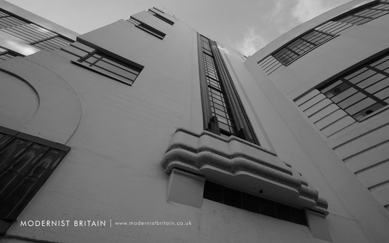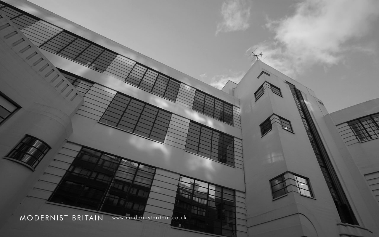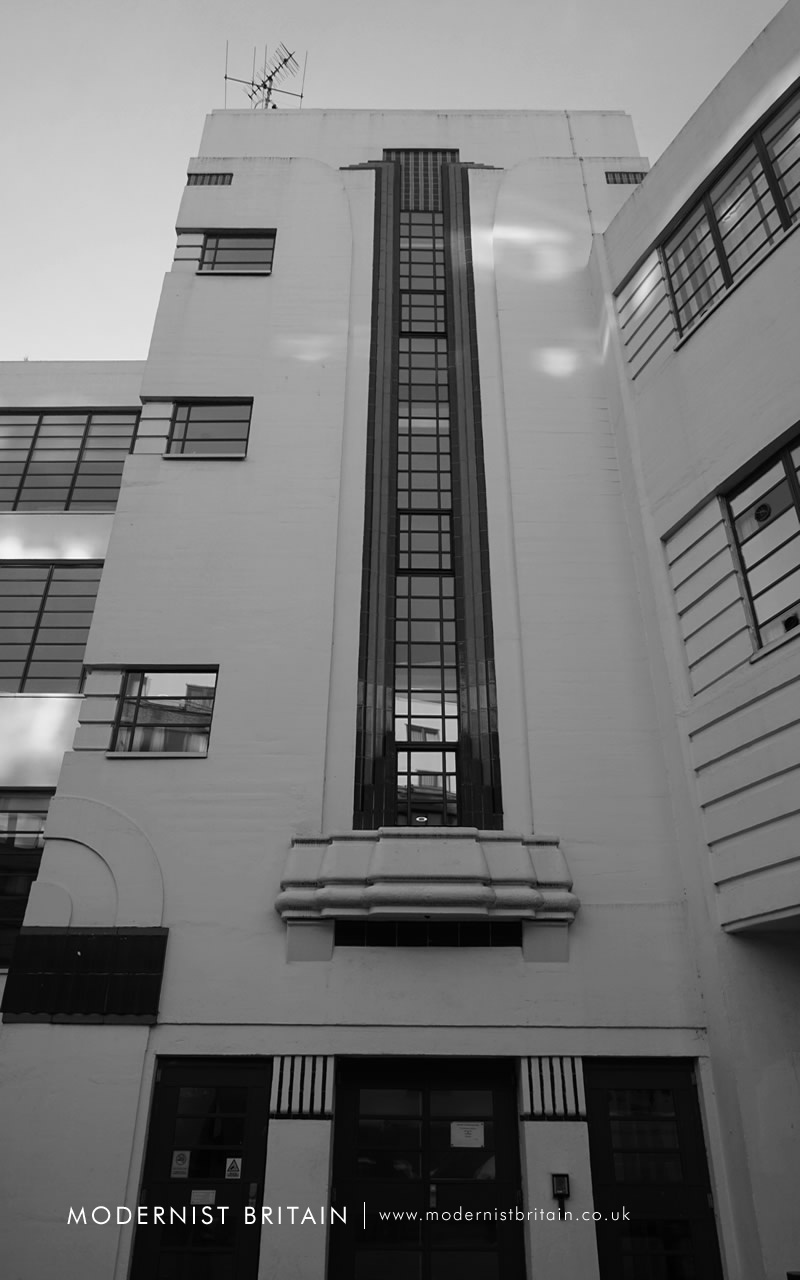 Constructed of reinforced concrete and extending over four storeys (and basement level) the building comprises a main block, with a central stairwell and lift core. Each of the storeys features Crittall metal-framed windows forming distinctive horizontal bands. The piers between each window are set with horizontal channels, mirroring those in the windows.
