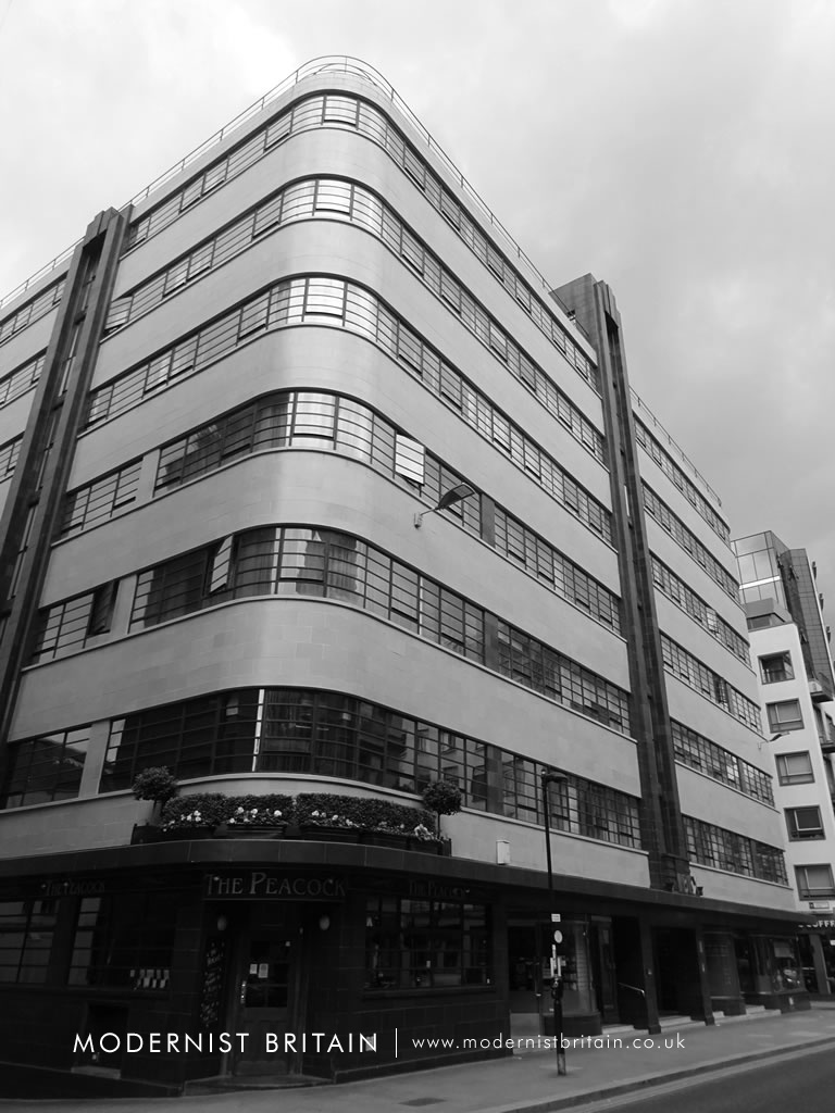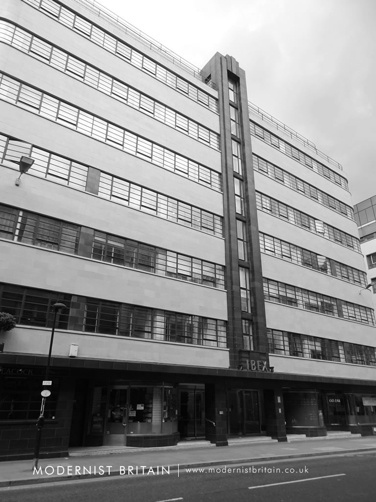 Standing on the east side of Minories in Central London, less than half a mile north of the Tower of London, stands the Ibex House, a impressive-looking 1930s office block. The building is in the Streamlined Moderne style of Modernist architecture, popularised by the Odeon Cinema chain, but used here for a commercial building. Ibex House was designed by the architectural practice of Fuller, Hall and Foulsham. Today, the practice is one of the lesser known of the period. Fuller, Hall and Foulsham also designed Blenstock House in Cental London, located at the junction of Blenheim Street and Woodstock Street just off Oxford Street, home to the auction house Bonhams.