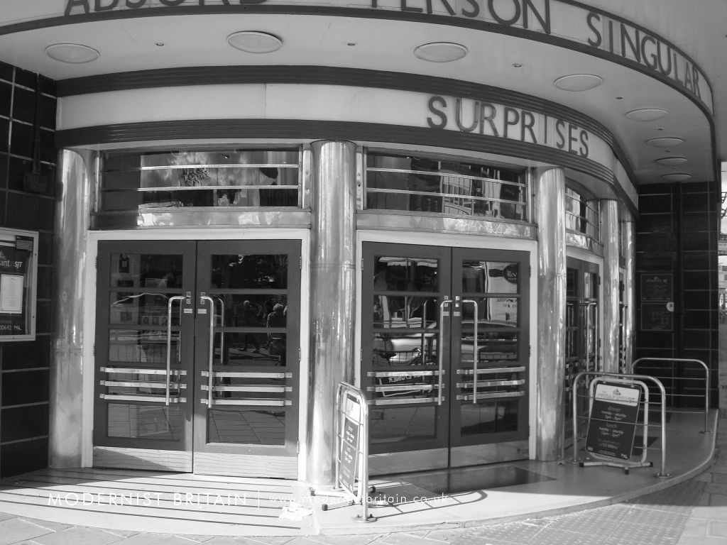 The design for the Odeon Scarborough was a scheme used a number of times by the Weedon Partnership, often at sites where the cinema occupied a corner plot at the junction of two roads. The basic design revolved around a main block, with a central fin or tower projecting from main facade and beneath a curved corner with projecting canopy. The design was used with subtle variations at Scarborough, Sutton Coldfield and its near twin at Harrogate, and Newport.