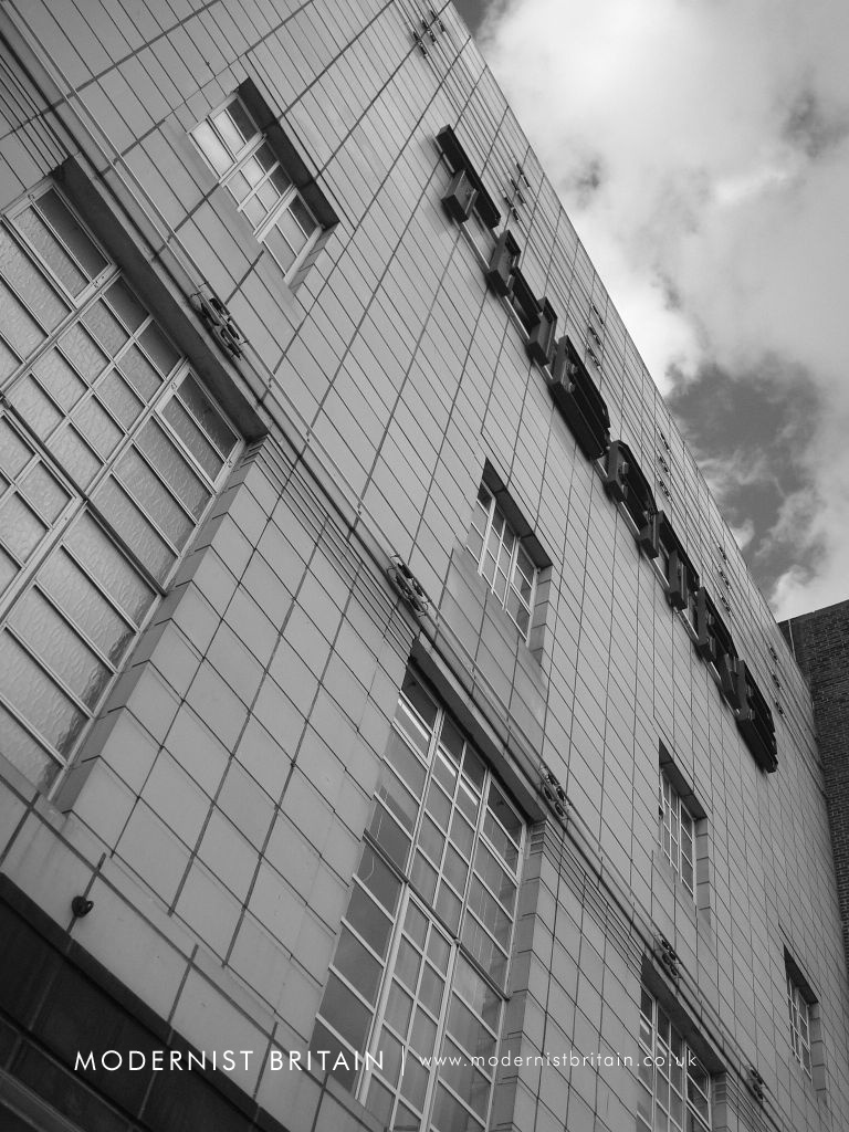 Returning along Westborough is a five storey block of four bays with a tiled, faience frontage. At ground floor level the faience is black in colour, with two slender red bands of faience towards the top. A door is recessed into the corner of the block whilst the rest of the facade at ground level carries three rectangular advertising hoardings.