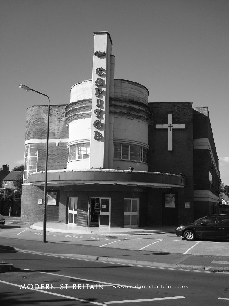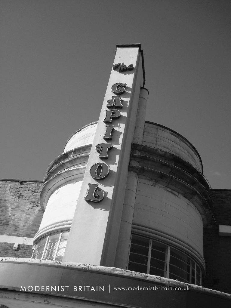 In the inter-war period cinema-going became increasingly popular amongst the British public. Entrepreneurs quickly set up local cinemas to cash in on this popularity. Although cinema the industry in Britain was dominated by large players the business was such an attractive proposition that many independent operators set up with one or a small chain of cinemas to serve a local population or area. The Capitol was one such cinema, designed by Reginald Cooper for the small Invincible Cinemas chain.